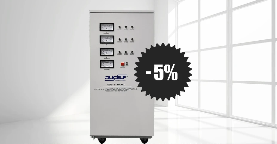 Дополнительная скидка 5% на трехфазные стабилизаторы напряжения Rucelf