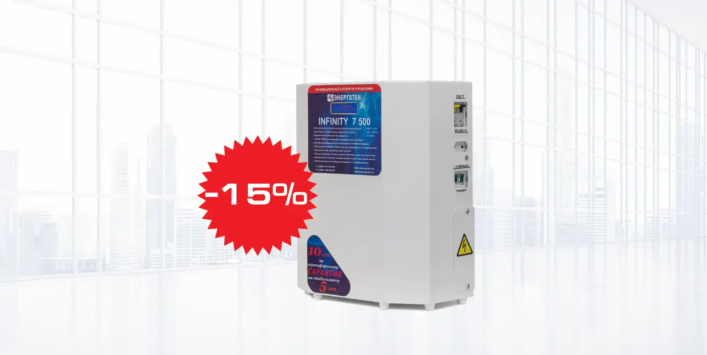 Скидка до 15% на весь модельный ряд стабилизаторов напряжения Энерготех
