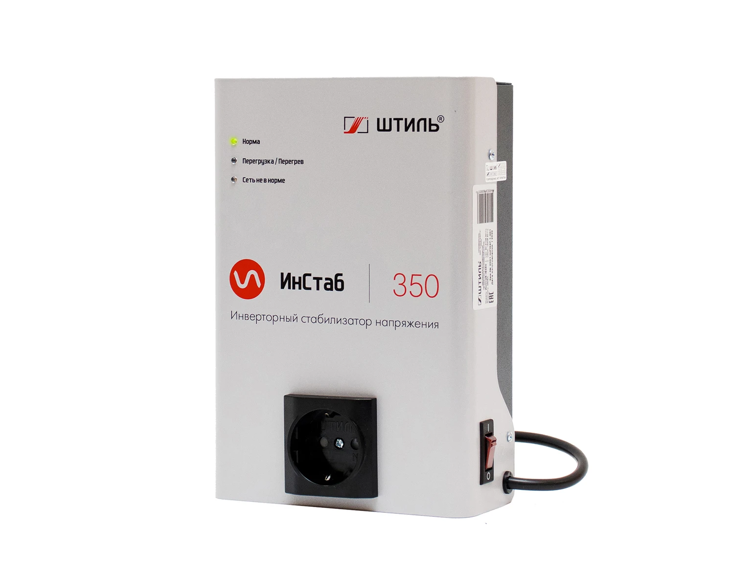 Мощность: 350; рабочий диапазон: 90 - 310 Вольт; точность: 220 Вольт ± 2 %; время отклика: ~0 мс; установка: Настенный.