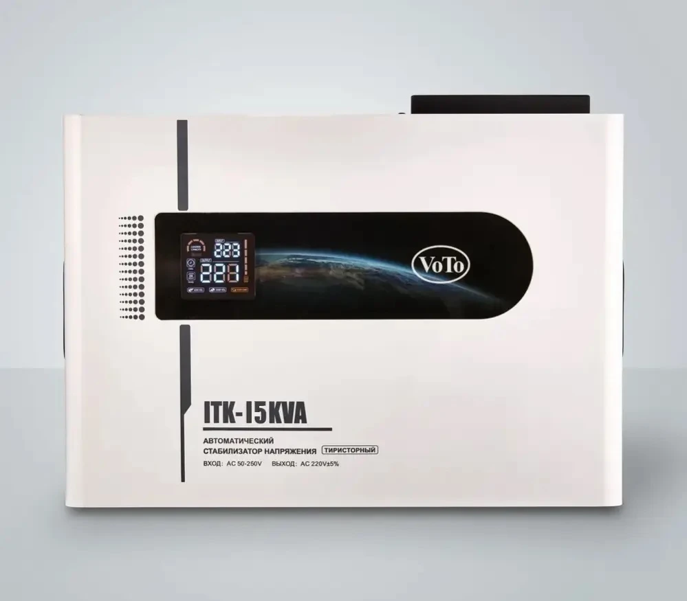 Мощность: 14000; рабочий диапазон: 45 - 253 Вольт; точность: 220 Вольт ± 7 %; время отклика: 10 мс; установка: Настенный.