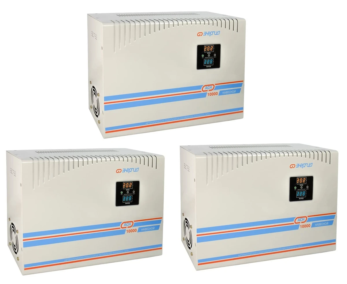 Мощность: 30000; рабочий диапазон: 140 - 260 Вольт; точность: 380 Вольт ± 8 %; время отклика: 10 мс; установка: Настенный.