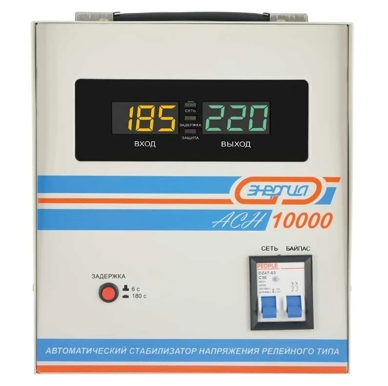 Мощность: 10000; рабочий диапазон: 90 - 310 Вольт; точность: 220 Вольт ± 2 %; время отклика: ~0 мс; установка: Настенный.